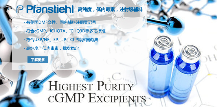 “熱烈祝賀Pfanstiehl的注射級甘氨酸Glycine(G-140)喜獲CDE登記號F20250000403, 這是Pfanstiehl產品獲得的第18個CDE登記號!”甘氨酸在醫藥輔料制劑中應用廣泛,, 可作為緩沖劑,增溶劑,穩定劑等,具有諸多優勢。Pfanstiehl秉承一貫高品質理念,為滿足全球生物制藥行業對于高品質甘氨酸的需求,隆重推出的注射級甘氨酸Glycine (G-140), 具有超高純度,超低內毒素,超低金屬殘留的特點,單獨檢測29種金屬離子,并且新增DNA,RNA,DNA酶,RNA酶和脂肪酶,亞硝酸鹽等多項質量指標的檢測,符合多國藥典規定(USP, EP, BP, JPE, ChP),可用于生物治療性藥物和疫苗的生產。產品信息:· 產品名稱:Glycine, High Purity, Low Endotoxin, Low Metals, USP, EP, BP, JPE, ChP (G-140)· 中文名稱:甘氨酸· 分子式:C2H5NO2· 分子量:75.07 g / mol· CAS號:56-40-6· 產品貨號:G-140產品特點: · 超高純度,超低內毒素,超低微生物含量,超低金屬雜質殘留· 質量指標新增DNA,RNA,DNA酶,RNA酶,脂肪酶和亞硝酸鹽檢測· 符合多國藥典:USP, EP, BP, JPE, ChP· 符合ICH Q3D標準· 符合GMP標準· 已獲DMF和CDE登記號 產品應用:· 緩沖劑· 穩定劑· 增溶劑如果您對Pfanstiehl注射級別Glycine G-140感興趣,歡迎聯系Pfanstiehl 中國區代理商北京西美杰科技有限公司獲得如下詳細的產品概況說明文件和測試樣品。Pfanstiehl Inc.最新產品系列如下,歡迎聯系北京西美杰科技有限公司獲取100g裝免費樣品。北京西美杰科技有限公司為Pfanstiehl中國代理,為客戶提供完善的技術支持與售后服務。歡迎撥打西美杰客服電話400-050-4006或者登陸網站www_xmjsci_com.5lew.com了解更多信息。 更多>